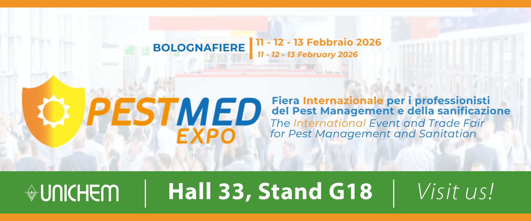 UNICHEM ma przyjemność ogłosić swój udział w Pest Med Expo 2026, które odbędzie się w dniach 11–13 lutego 2026 r. w Bolonii we Włoszech. Jako nasze pierwsze targi w 2026 roku, wydarzenie to stanowi doskonałą okazję, aby mocno rozpocząć nowy rok i nawiązać kontakt z partnerami z Włoch oraz krajów sąsiednich.